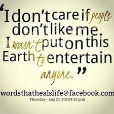 | This quote is really inspiring because it tells us that you shouldn't care about what people say about you because that isn't the reason you were put on earth. People don't tell you how to look and what to wear. You have the choice for a reason; you choose what to do, people don't choose for you. You aren't going to enjoy your life if you care about what people say. You are not here to entertain them, but to live your best life. |